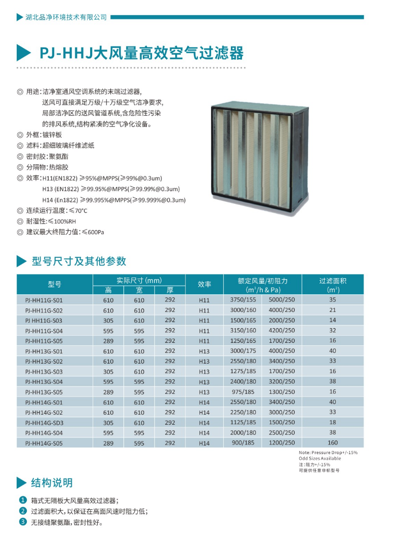 PJ-HHJ大风量高效空气过滤器