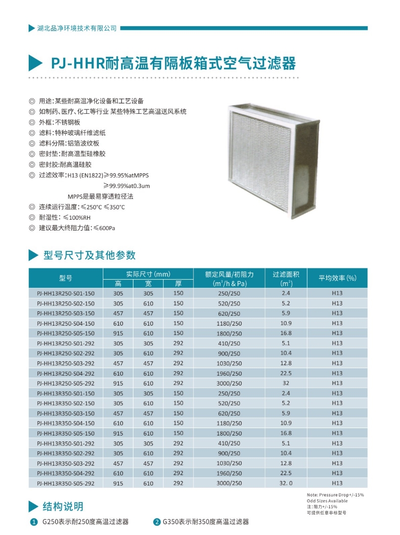 PJ-HHR耐高温有隔板箱式空气过滤器